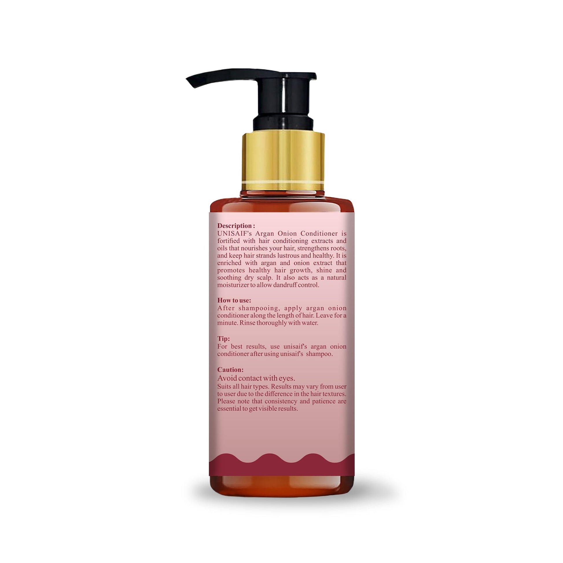 UNISAIF's argan onion conditioner is fortified with hair conditioning extracts and oils that nourish your hair, strengthen your roots, and keep your hair strands lustrous and healthy. It is enriched with argan and onion extracts that promotes healthy hair growth & shine while also soothing dry scalp & skin inflammation. It also acts as a natural moisturizer to allow dandruff control.