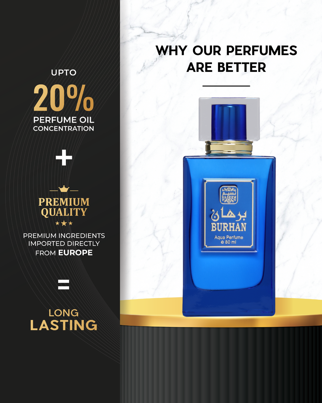 Burhan transports our senses into the colorful and hectic streets of Morocco where the vivacious and colorful small streets filled with overpowering spicy notes encounter the fresh aquatic notes from the courtyard fountains of the local houses.