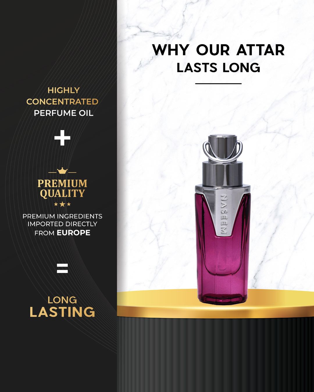 The scent settles into a smooth and sensual base of white musk, patchouli, and tonka bean, leaving a warm, lasting impression.