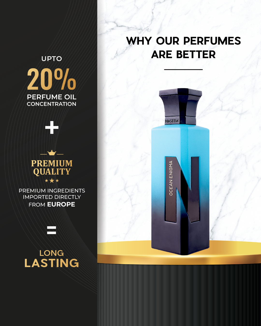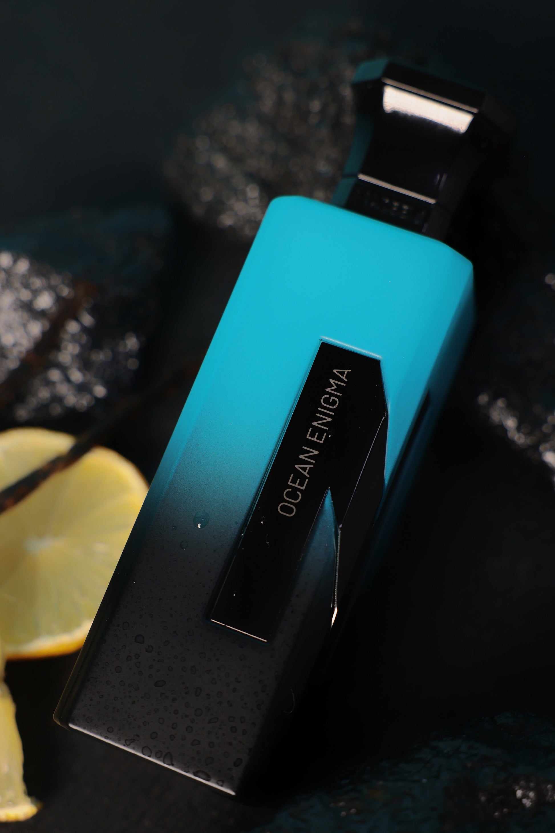 “Ocean Enigma” opens with a refreshing blend of lemon, bergamot, and grapefruit, transporting you to a serene coastal paradise.