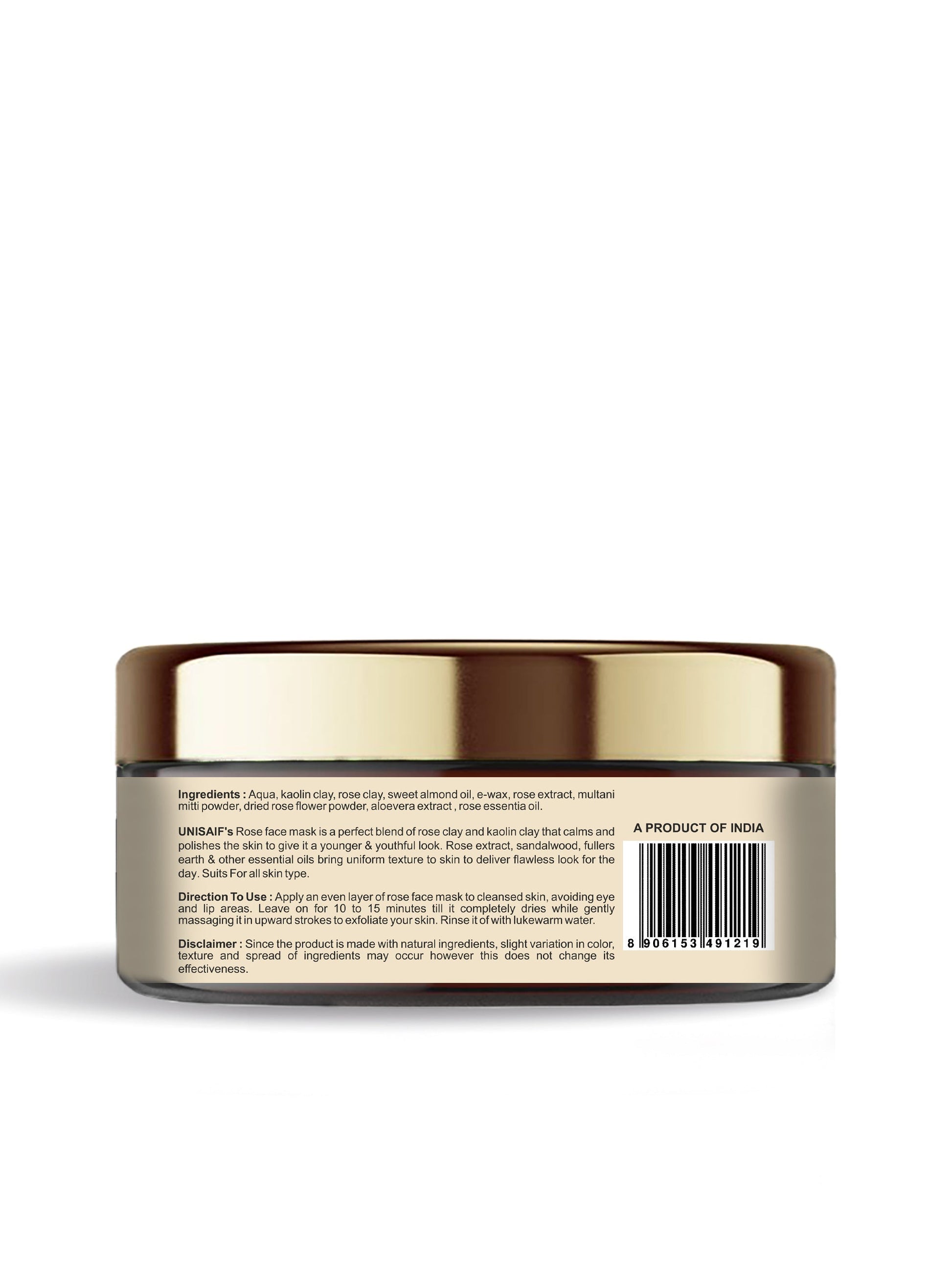 UNISAIF'S rose face mask is a perfect blend of rose and kaolin clay that calms and polishes the skin to give it a younger & youthful look. Consist of exfoliating as well as hydration properties for skin's firmness and rejuvenation. Rose extract, sandalwood & other essential oils bring uniform texture to skin to deliver flawless look of the day.