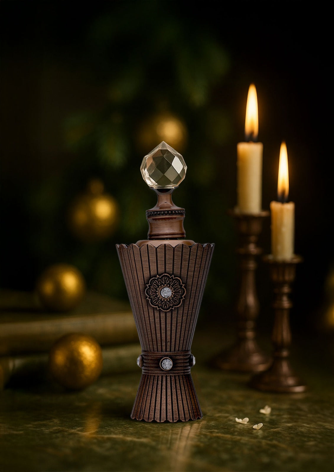 As it settles, the fragrance evolves into a smooth, earthy base of vetiver, sandalwood, amber, and musk, creating a grounded and luxurious finish that's both comforting and elegant.