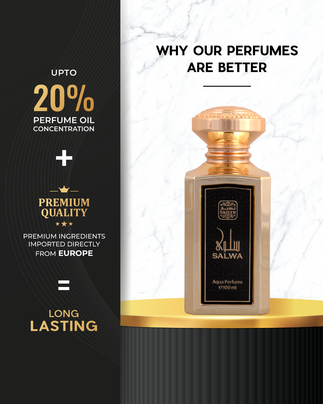 The labdanum and balsamic notes in the base evoke a musky-ambery aroma giving Salwa a unique flare
