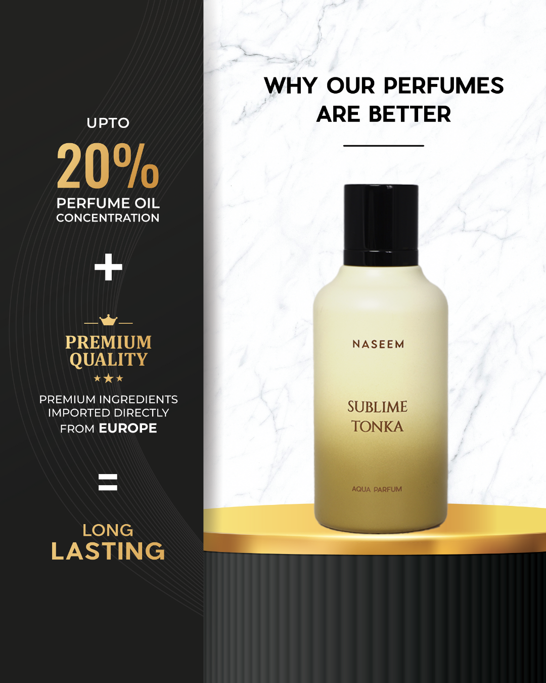 Sublime Tonka is a warm and luxurious woody-ambery fragrance that begins with an elegant blend of rose and saffron, offering a floral-spiced introduction.