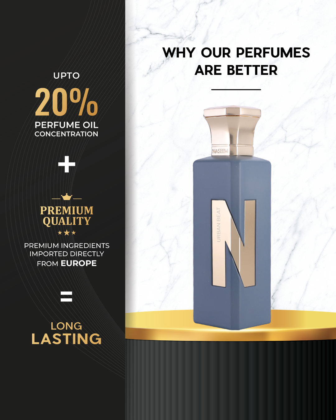 Modern, loud, excessive, “Urban beat” is an exhilarating and confident fragrance opening with ultra-modern aldehydic notes that merge powerfully with a powdery heart of rose and orris.